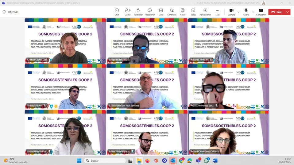 El pasado 9 de octubre tuvo lugar una nueva reunión de coordinación del proyecto SOMOSSOSTENIBLES.COOP2, celebrada de forma telemática a través de Teams.
